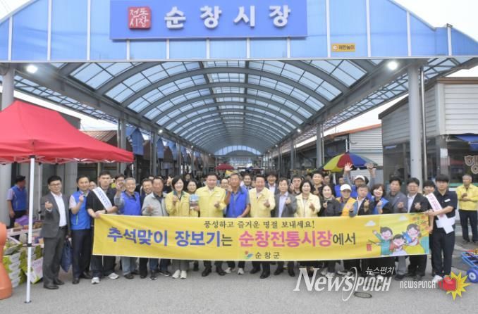 뉴스펀치 정홍균 기자 | 순창군은 추석 명절을 앞두고 지역 전통시장의 이용을 독려하고 지역 상권을 활성화하기 위해 추석맞이 시장 장보기 행사를 1일 순창시장 일원에서 실시했다고 밝혔다.