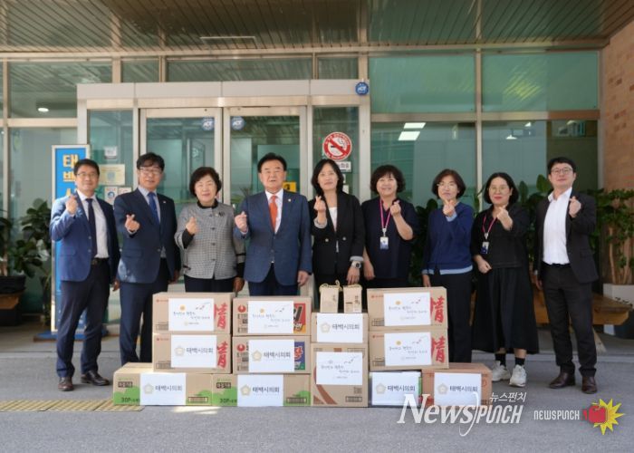 뉴스펀치 김길룡 기자 | 태백시의회는 민족 대명절 추석을 맞아 1일 소외된 이웃들과 따뜻한 온정을 나누기 위해 관내 요양·장애인시설과 군부대를 방문하여 위문품을 전달했다.