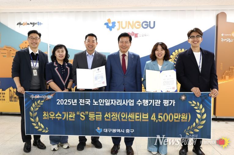 뉴스펀치 조평훈 기자 | 대구 중구는 중구시니어클럽이 노인일자리사업 수행기관 평가에서 4년 연속 최우수기관으로 선정됐다고 밝혔다.
