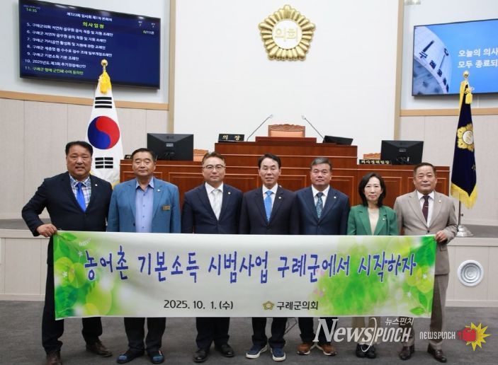 뉴스펀치 강길수 기자 | 구례군의회는 지난 10월 1일 열린 제323회 임시회 본회의에서 '농어촌 기본소득 시범사업 선정 촉구 건의안'을 채택했다.