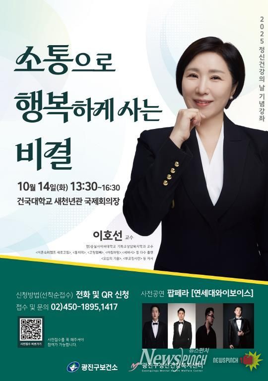 뉴스펀치 김완규 기자 | 광진구는 오는 10월 14일 ‘정신건강의 날(매년 10월 10일)’을 맞아 건국대학교 새천년관 국제회의장에서 광진구정신건강복지센터 주관 기념 강좌를 개최한다.