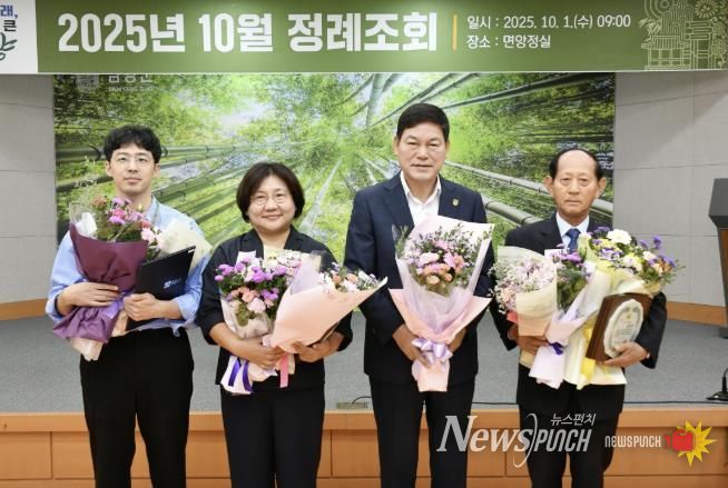 뉴스펀치 김길룡 기자 | 담양군은 1일 군청 면앙정실에서 공직자 160여 명이 참석한 가운데 10월 정례조회를 개최했다.