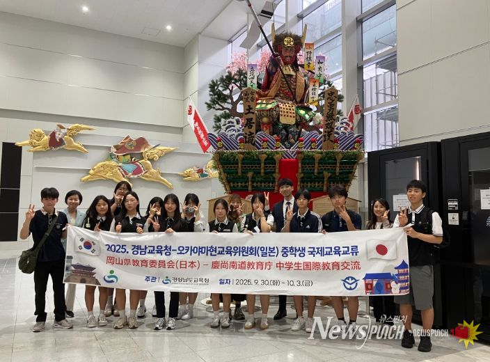 뉴스펀치 김길룡 기자 | 경상남도교육청은 9월 30일부터 10월 3일까지 4일간 도내 중학생 국제교육교류단 16명이 일본 오카야마현을 방문했다.