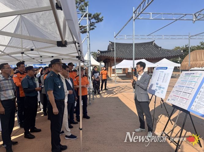 이번 보고회는 축제 주행사장인 벽골제 신정문에서 시작해 주요 프로그램 운영 공간별로 이동하며 진행됐다. 이날 정성주 김제시장을 비롯한 간부 공무원과 관계 공무원 및 경찰‧소방 등 유관기관이 참석해 행사 전반의 추진 상황을 공유하고 미비점을 보완하는 시간을 가졌다.