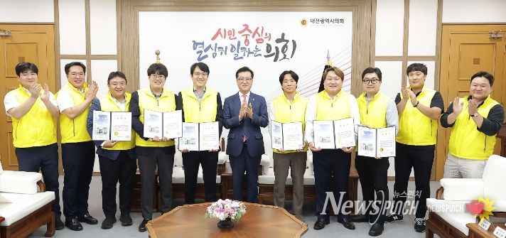 뉴스펀치 김길룡 기자 | 대전시의회 조원휘 의장은 1일‘열두별봉사단’회원 6명을 초청해 표창장 수여 및 환담을 진행했다.
