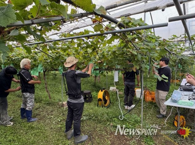 뉴스펀치 김길룡 기자 | 청양군농업기술센터(소장 남윤우)는 지난 30일 남양면 충절로 일원 포도 재배 농가(노승일 외)에서 농업인 어깨 부담 작업의 정확한 진단을 위해 산업용 웨어러블 로봇(편의장비)을 활용한 생체·역학적 현장평가를 실시했다고 밝혔다.