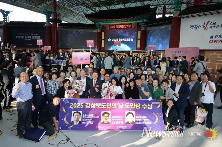 뉴스펀치 김길룡 기자 | 포항시는 1일 경주엑스포공원 백결공연장에서 열린 ‘2025 경상북도민의 날’ 기념식에서 포항시 출신 3명이 ‘자랑스러운 경상북도민상’을 수상했다고 밝혔다.
