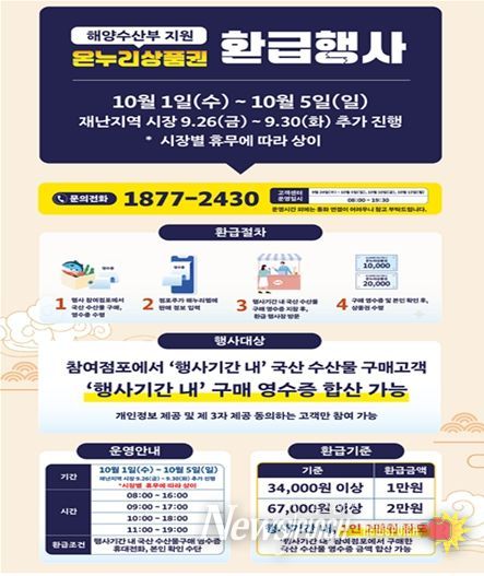 뉴스펀치 김길룡 기자 | 부산시는 추석 명절 소비자 장바구니 부담을 완화하고 소비를 활성화하기 위해 오는 10월 5일까지 전통시장 수산물 온누리상품권 환급행사를 개최한다고 밝혔다.