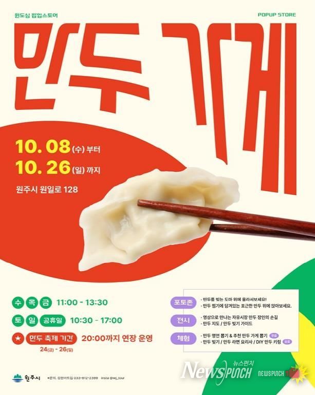 뉴스펀치 김길룡 기자 | 원주시는 원도심 활성화와 만두축제 홍보를 위해 오는 8일부터 26일까지 ‘만두가게’ 팝업스토어를 운영한다.