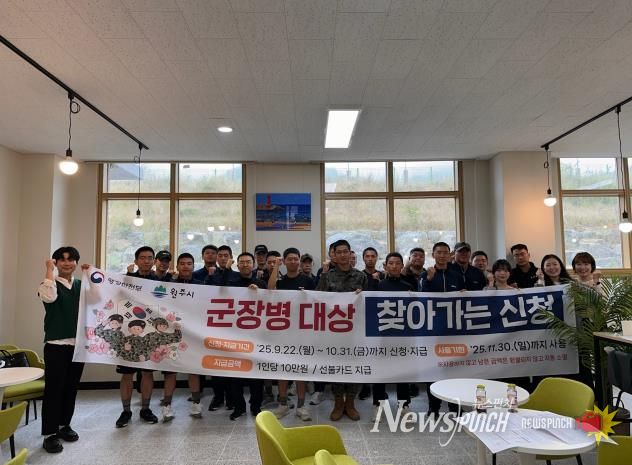 뉴스펀치 김길룡 기자 | 원주시는 9월 30일부터 10월 1일 이틀간 군 장병 대상 “찾아가는 신청”을 접수받기 위해 항공사제71항공정비대대, 1군지사 2곳을 방문했다.
