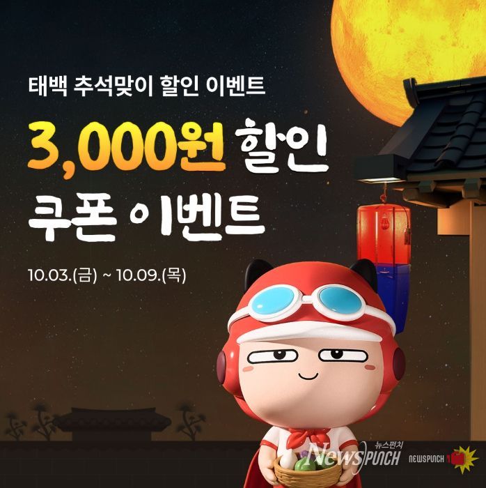 뉴스펀치 김길룡 기자 | 태백시는 추석 연휴를 맞아 공공배달앱 ‘먹깨비’ 할인 이벤트를 진행한다고 밝혔다.