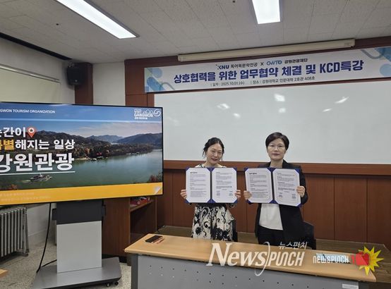 뉴스펀치 김길룡 기자 | 강원관광재단 글로벌마케팅실은 10월 1일 강원대학교 독어독문학전공과 글로벌 관광 전문 인재 양성을 위한 업무협약(MOU)을 체결했다.
