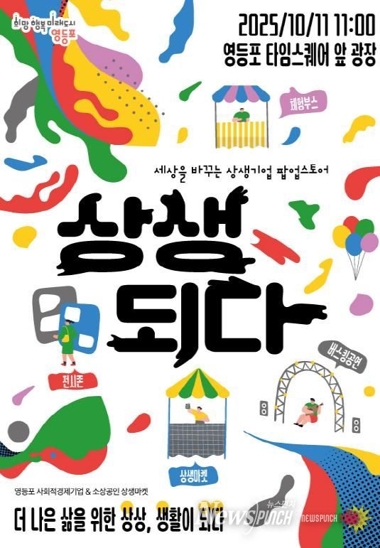 뉴스펀치 김완규 기자 | 영등포구가 오는 10월 11일 타임스퀘어 앞 광장에서 지역 상생기업이 한자리에 모이는 ‘2025년 상생기업 팝업마켓 – 상생되다’를 개최한다고 밝혔다. 이번 행사는 지역 주민과 소통하고, 제품을 알리며 상생기업의 판로를 넓히기 위해 마련됐다.