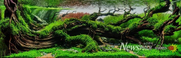 특히 지리산 자락 계곡의 흐름과 유려한 형상의 나무들에 영감을 받아 수조 안을 재현해 국내 출품작 중 가장 좋은 평가를 받았다.