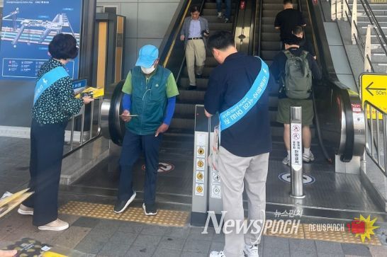 뉴스펀치 김길룡 기자 | 광주 광산구는 지난 1일 추석을 맞아 광주송정역에서 도로명주소 현장 캠페인을 했다고 밝혔다.