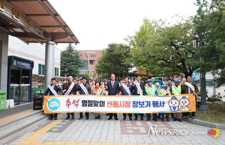 뉴스펀치 김길룡 기자 | 상주시는 추석 명절을 앞두고 경기침체로 어려움을 겪고 있는 전통시장 상인들의 사기 진작과 내수경기 활성화를 위해 10월 2일에 전통시장 장보기 행사를 진행했다.