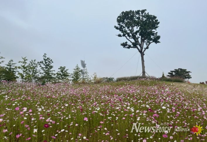 뉴스펀치 김길룡 기자 | 충주시가 도심 속에 대규모 코스모스 단지를 조성해 시민들에게 가을의 정취를 선사하고 있다.