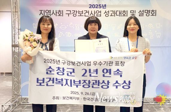 뉴스펀치 김길룡 기자 | 순창군이 전국 지방자치단체를 대상으로 열린 ‘2025년 구강보건사업 성과대회’에서 우수기관으로 선정돼 보건복지부 장관 표창을 수상했다.