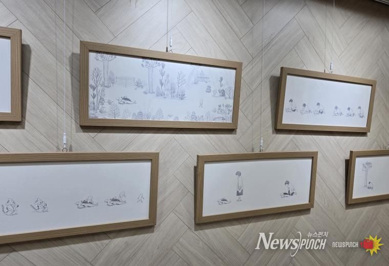 전시된 원화들은 만남, 이별 그리고 애도의 순간들을 연필 선으로 섬세하게 표현해 마치 오래된 영화 필름을 보는 듯한 감동과 즐거움을 선보인다.
