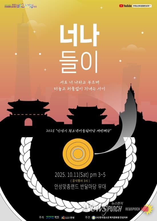 오는 10월 11일 오후 3시부터 5시까지, 안성맞춤랜드 반달마당에서는 2025 안성시 청소년어울림마당 세 번째 무대, ‘너나들이’가 펼쳐진다.