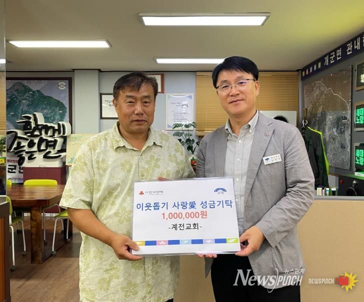 뉴스펀치 탁상훈 기자 | 양평군 개군면은 지난 1일, 개군면 계전 2리에 위치한 계전교회가 추석 명절을 앞두고 지역 내 어려운 이웃을 돕기 위한 성금 100만 원을 기탁했다고 밝혔다.