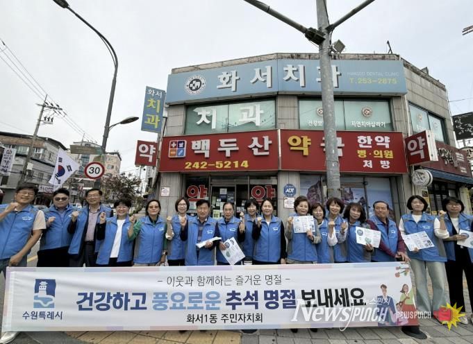 뉴스펀치 탁상훈 기자 | 수원시 팔달구 화서1동 주민자치회는 2025년 10월 2일 아침 ‘추석 맞이 안전한 명절 보내기 캠페인’을 진행했다.
