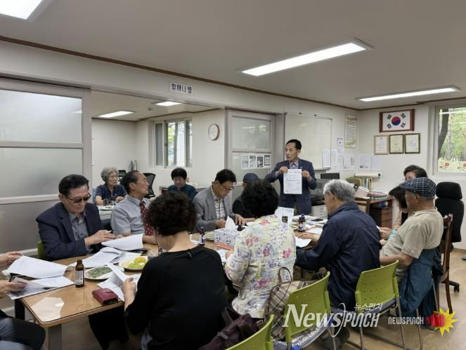 뉴스펀치 탁상훈 기자 | 수원시 팔달구 화서2동 행정복지센터는 지난 10월 1일 오전 11시, 관내 16개소 경로당 회장단이 참석한 가운데 꽃뫼버들마을 금강아파트 경로당에서 2025년 10월 경로당협의회 월례회의를 개최했다.