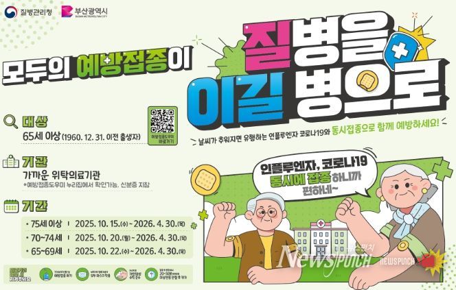 뉴스펀치 김길룡 기자 | 사상구보건소는 오는 10월 15일부터 내년 4월까지 65세 이상 어르신을 대상으로 인플루엔자(독감)·코로나19 동시 접종을 진행한다고 밝혔다.