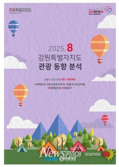뉴스펀치 김길룡 기자 | 강원특별자치도와 강원관광재단은 빅데이터 기반의 강원관광 동향분석을 통해 강원특별자치도를 방문한 8월 관광객은 전년 동월대비 2.8%, 전월 대비 20.7% 증가한 약 1,855만 명이라고 밝혔다.