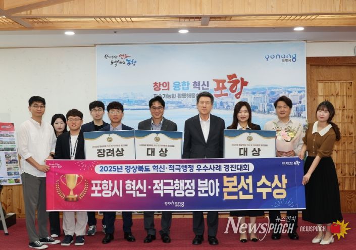 뉴스펀치 김길룡 기자 | 포항시는 지난 26일 경상북도가 주관한 ‘2025년 경상북도 혁신 및 적극행정 우수사례 경진대회’에서 혁신·적극행정 분야 대상 2관왕과 혁신분야 장려상을 동시에 거머쥐었다.
