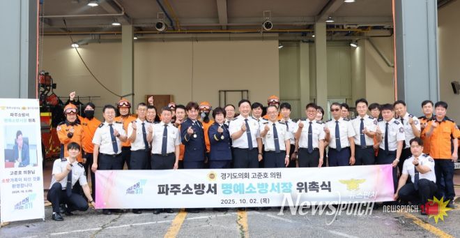 뉴스펀치 탁상훈 기자 | 파주소방서는 10월 2일 경기도의회 보건복지위원회 부위원장 고준호 의원을 1일 명예소방서장으로 위촉했다고 밝혔다.