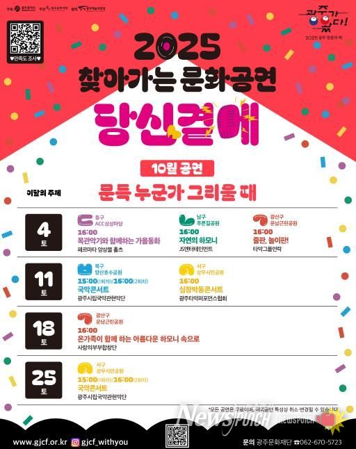 뉴스펀치 조은별 기자 | 광주문화재단 ‘찾아가는 문화공연 '당신곁에'’ 10월 공연이 오는 4일부터 본격 시작한다.