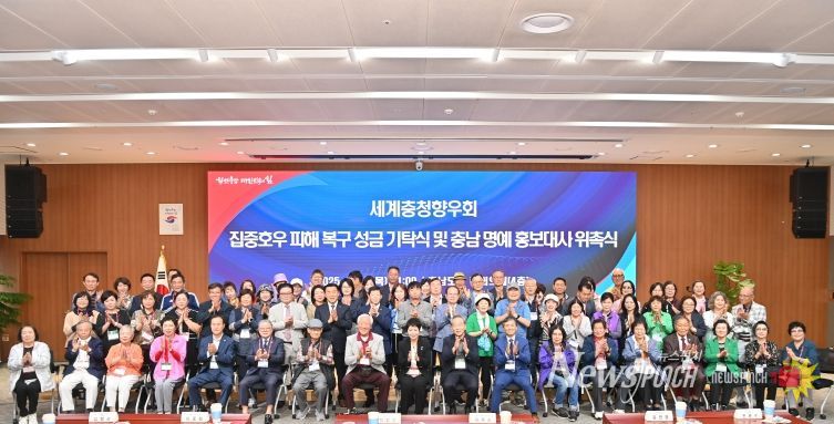 이 세계충청향우회장은 “지난해에 이어 올해도 고향 충남에 집중호우로 큰 피해가 있었던 것으로 안다. 복구에 조금이나마 힘이 되길 바란다”라며 “충남 명예 홍보대사로 위촉된 만큼 세계충청향우회 회원들과 함께 충남을 알리는 데 기여할 것”이라고 말했다.