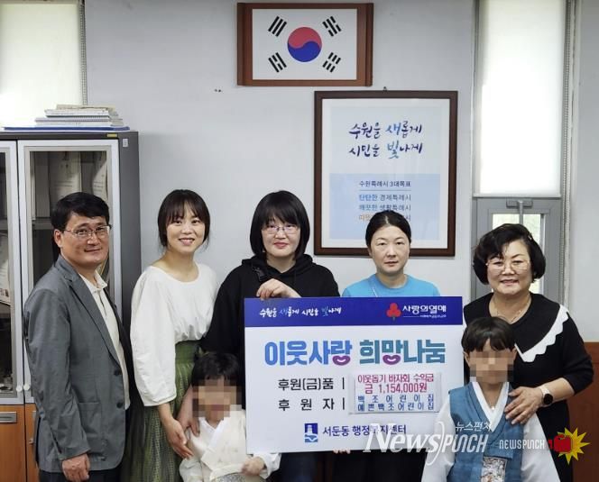 뉴스펀치 탁상훈 기자 | 수원시 권선구 서둔동에 위치한 백조어린이집 및 예쁜백조어린이집은 지난 2일, 지역사회 내 어려운 이웃과 소외계층을 위해 어린이집 체험활동 수익금 1,154,000원을 서둔동행정복지센터에 기부했다.