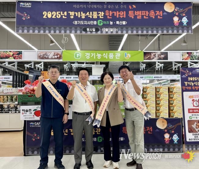 뉴스펀치 탁상훈 기자 | 경기도 농정해양위원회 방성환 위원장(국민의힘, 성남5)은 1일 성남 하나로마트 경기농식품관에서 열린 '2025 경기농식품관 한가위 특별판촉전'에 참석해 관계자와 소비자들을 격려했다.