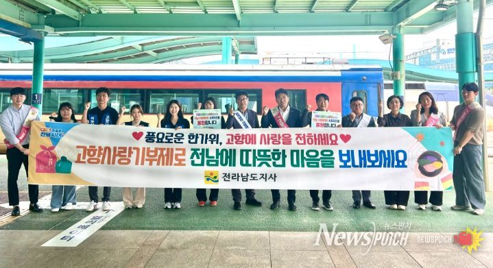 뉴스펀치 김길룡 기자 | 전라남도는 2일 목포역·순천역·나주역에서 민족 대명절인 추석을 맞아 ‘고향사랑기부제’와 ‘전남 사랑애(愛) 서포터즈’ 활성화를 위한 고향사랑 실천 캠페인을 진행했다고 밝혔다.