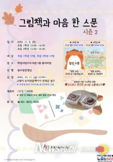 프로그램은 초등 1~2학년 각 10명씩 총 20명을 대상으로 화정어린이도서관 2층 동아리방에서 진행될 예정이다.