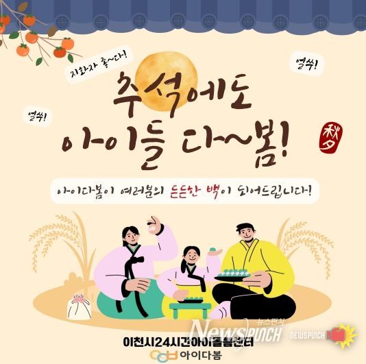 뉴스펀치 탁상훈 기자 | 이천시는 추석 연휴 기간에도 이천시 24시간 아이돌봄센터인 ‘아이다봄’을 365일 24시간 정상 운영해 연휴 중 발생할 수 있는 돌봄 공백을 최소화한다고 밝혔다.