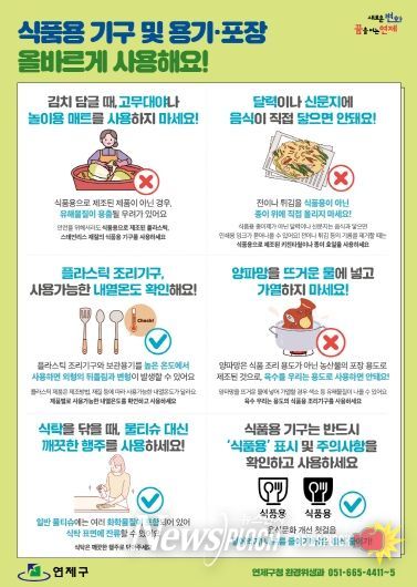 뉴스펀치 김길룡 기자 | 연제구는 구민들의 건강을 지키고 안전한 식생활 문화를 확산하기 위해 ‘식품용 기구 및 용기・포장 올바르게 사용해요!’ 홍보물을 제작했다.