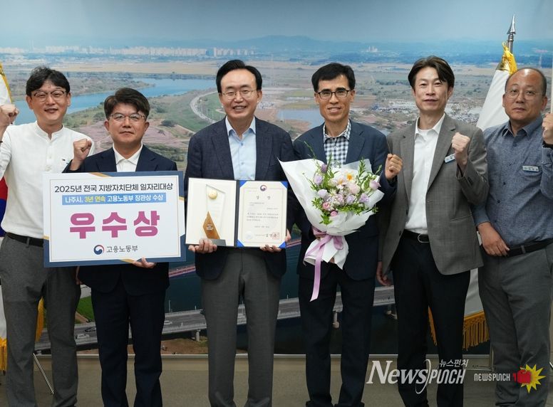 뉴스펀치 김길룡 기자 | 전라남도 나주시가 고용노동부 주관 ‘전국 지방자치단체 일자리대상’ 공시제 부문에서 우수상을 받으며 고용노동부장관상을 거머쥐었다.