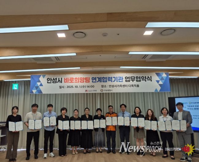 뉴스펀치 탁상훈 기자 | 안성시는 지난 10월 1일 안성시가족센터 다목적홀에서 가정폭력․성폭력 등 112신고 피해자에 대한 ‘원스톱 통합지원’을 위하여 업무협약(MOU)을 체결했다.