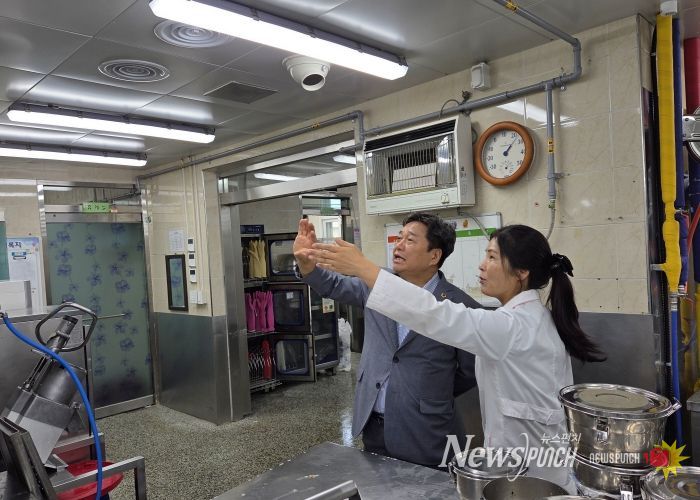 뉴스펀치 탁상훈 기자 | 경기도의회 교육기획위원회 김호겸 의원(국민의힘, 수원5)은 지난 9월 16일 광주시 남한산성면 소재 번천초등학교(교장 오재선)를 방문하여 학교 급식실 환기설비 개선 현황을 점검했다.