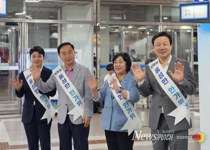 뉴스펀치 탁상훈 기자 | 성남시의회 더불어민주당협의회는 2일, 성남시종합버스터미널(야탑)을 찾아 고향으로 향하는 귀성객들을 환송하며 따뜻한 인사를 나눴다.