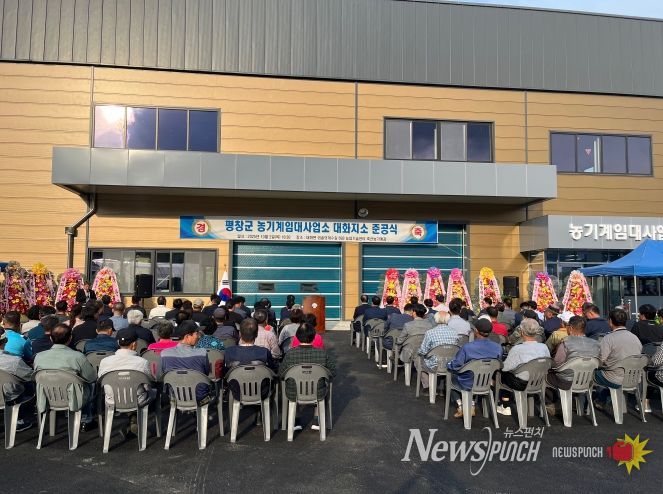 뉴스펀치 김길룡 기자 | 평창군은 2일 대화면 외솔덧개수길 693에서 농기계임대사업소 대화지소 준공식을 개최하고 본격적인 운영에 들어갔다.