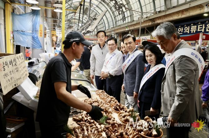 뉴스펀치 김길룡 기자 | 천안시의회는 민족 대명절인 추석을 앞두고 10월 2일 중앙시장을 찾아 시민과 상인들에게 따뜻한 인사를 전하며 명절 분위기를 함께 나누었다.