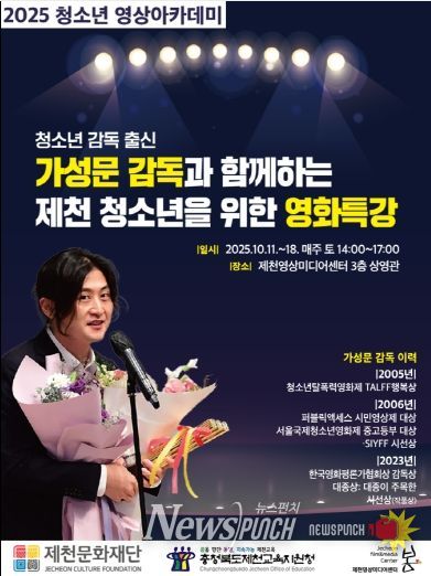 뉴스펀치 김길룡 기자 | 제천문화재단은 오는 11일과 18일 오후 2시 제천영상미디어센터 봄에서 ‘청소년 영상아카데미’교육생을 대상으로 가성문 감독과 함께하는 청소년 영화특강을 개최한다고 밝혔다.