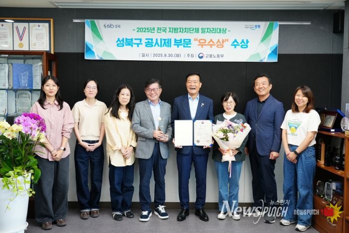 뉴스펀치 김완규 기자 | 서울 성북구가 9월 30일 청주 오스코에서 열린 고용노동부 주관 ‘2025년 전국 지방자치단체 일자리대상’에서 공시제 부문 우수상을 받았다.