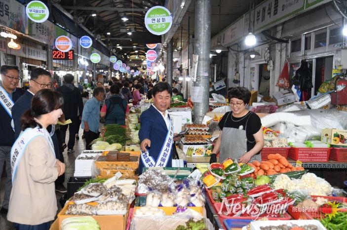 뉴스펀치 김길룡 기자 | 박정현 부여군수는 10월 4일 추석 명절을 앞두고 부여 전통시장을 방문하여 시장 상권을 둘러보고 상인들과 소통하는 자리를 가졌다.