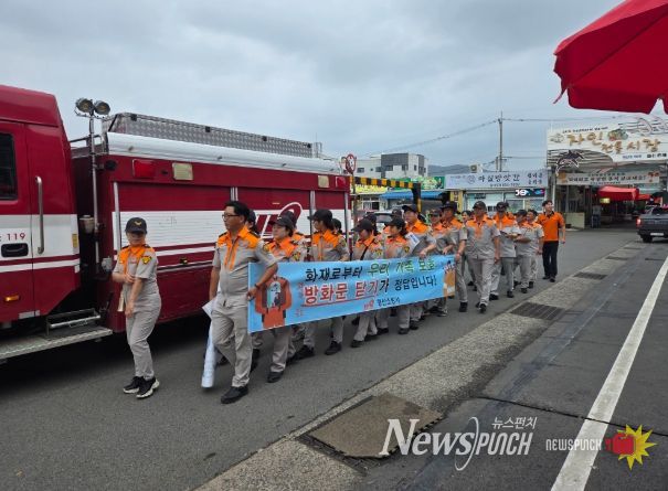 뉴스펀치 김길룡 기자 | 경산소방서(서장 한창완)는 지난 5일 경산 자인시장에서 열린 추석맞이 노래자랑 행사에서 자인남여의용소방대 20여명과 함께 화재예방 및 안전문화 확산 캠페인을 실시했다고 밝혔다.