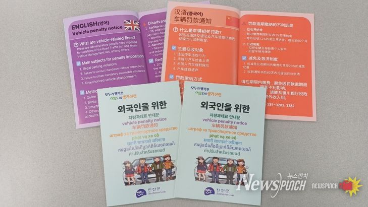 뉴스펀치 김길룡 기자 | 충북 진천군은 외국인의 차량 관련 과태료가 지속적으로 증가함에 따라 외국어 안내문을 자체 제작해 배포한다고 9일 밝혔다.